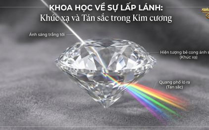Khả năng khúc xạ ánh sáng của kim cương là gì? Tìm hiểu vì sao kim cương lấp lánh nhờ khúc xạ, phản xạ và tán sắc ánh sáng.