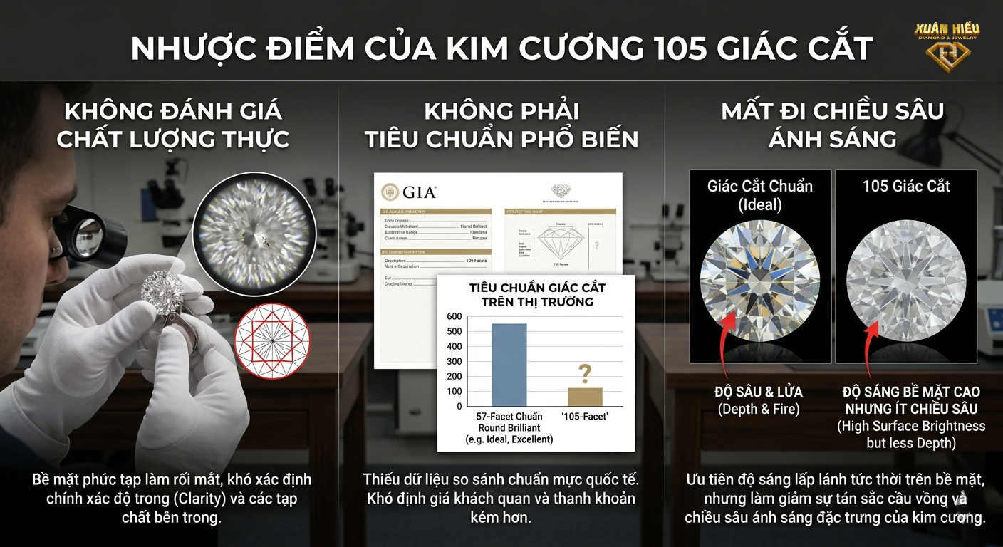 Kim cương 105 giác cắt không phải là chuẩn phổ biến trong ngành, nên: