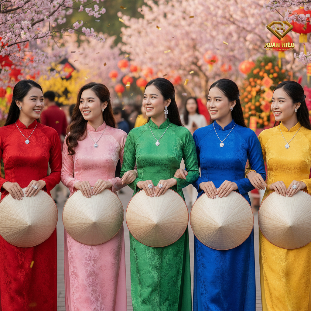 Trang sức nhà Xuân Hiếu được thiết kế tinh tế, dễ phối hợp với nhiều phong cách, đặc biệt là trang phục truyền thống, giúp bạn giữ trọn nét đẹp văn hóa nhưng vẫn mang hơi thở hiện đại.
