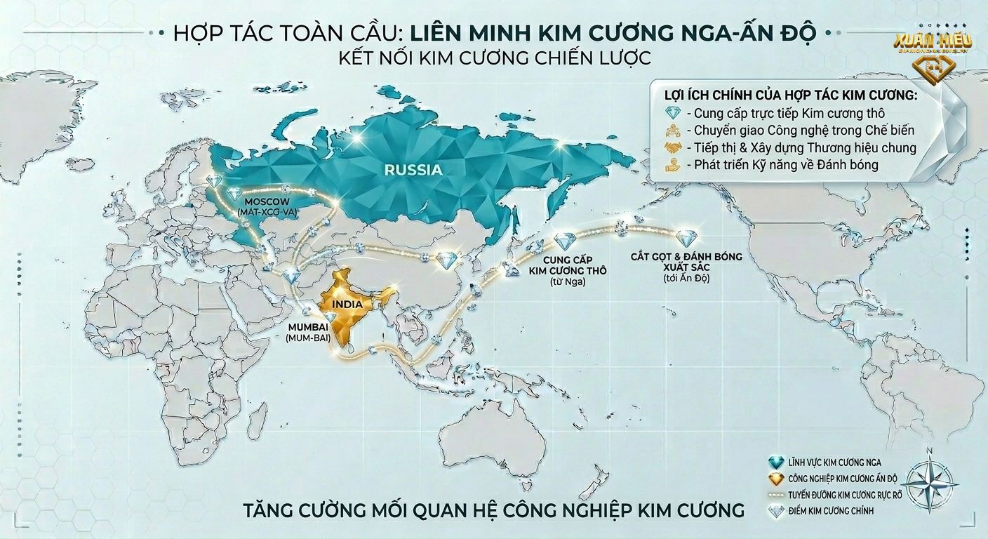 Nga cung cấp nguồn nguyên liệu, trong khi Ấn Độ đảm nhận vai trò chế tác, tạo nên một chuỗi cung ứng hiệu quả và bền vững.