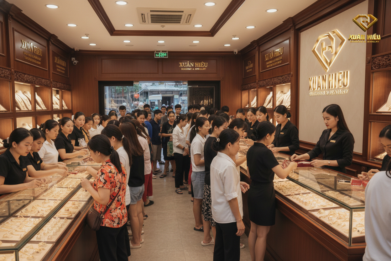 Ngày khai trương vía Thần Tài tại Xuân Hiếu được chuẩn bị chu đáo nhằm mang đến không gian mua sắm trang trọng và ấm cúng. Đội ngũ nhân viên sẵn sàng hỗ trợ để khách hàng lựa chọn được sản phẩm phù hợp nhất với nhu cầu và ngân sách.